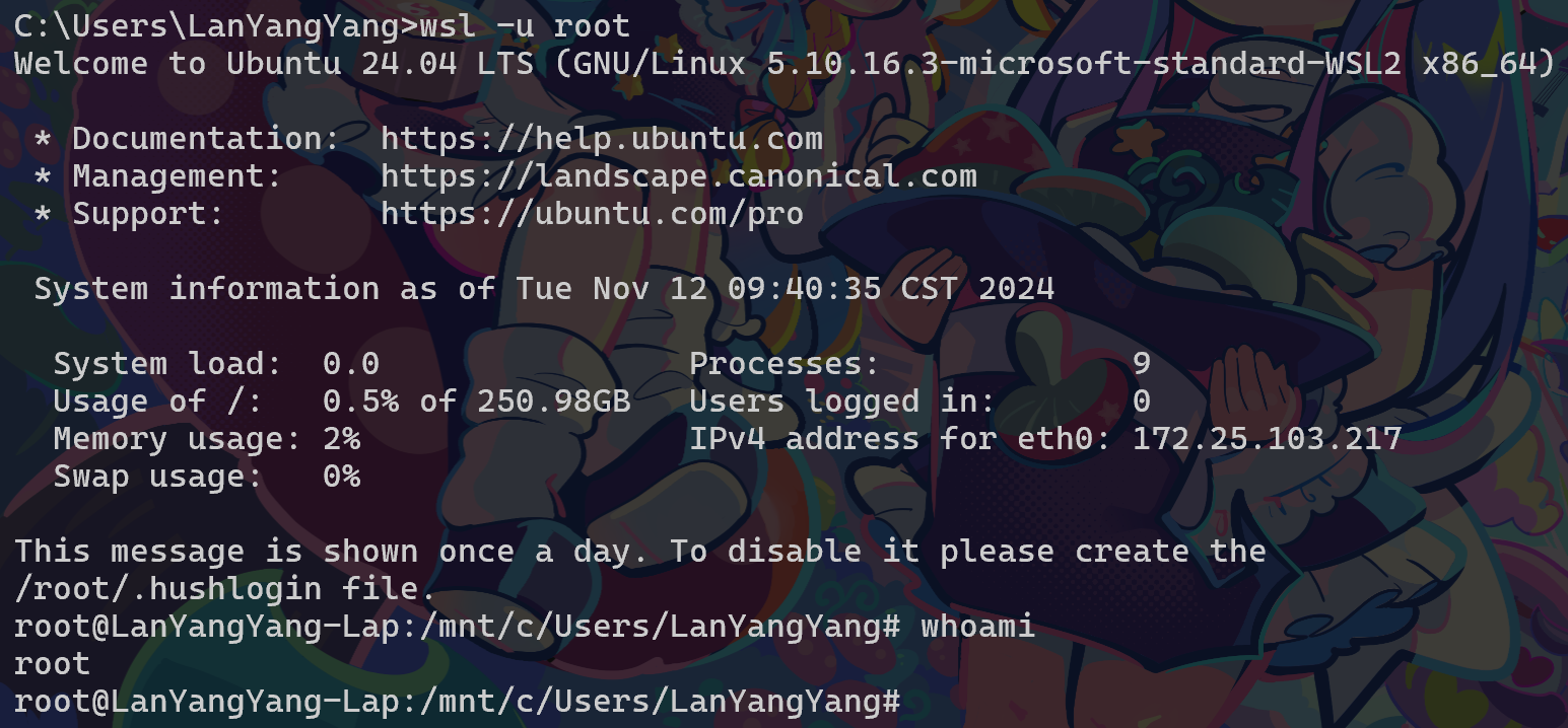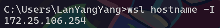 在终端里使用wsl hostname -I查看WSL的IP地址(用于从宿主机连接到WSL)