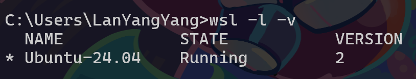 在终端里使用wsl -l -v显示当前所有发行版的状态