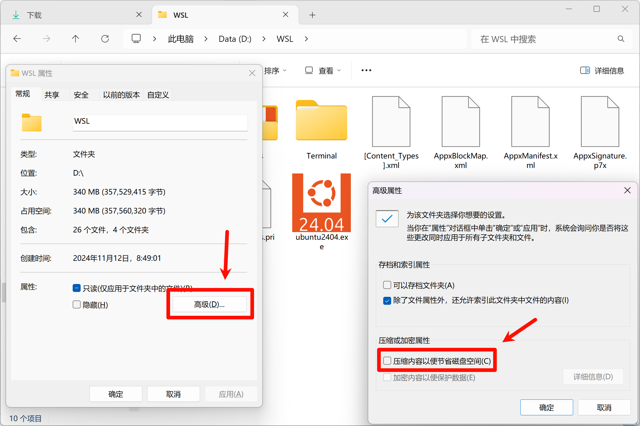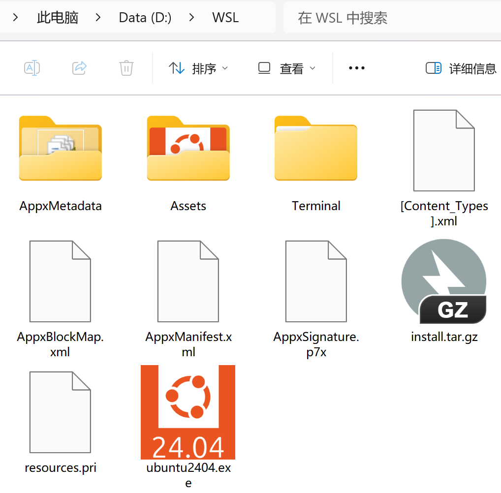 确保你创建的目录直接点进去就能直接看见ubuntu2404.exe,不要使用中文路径,避免出现问题