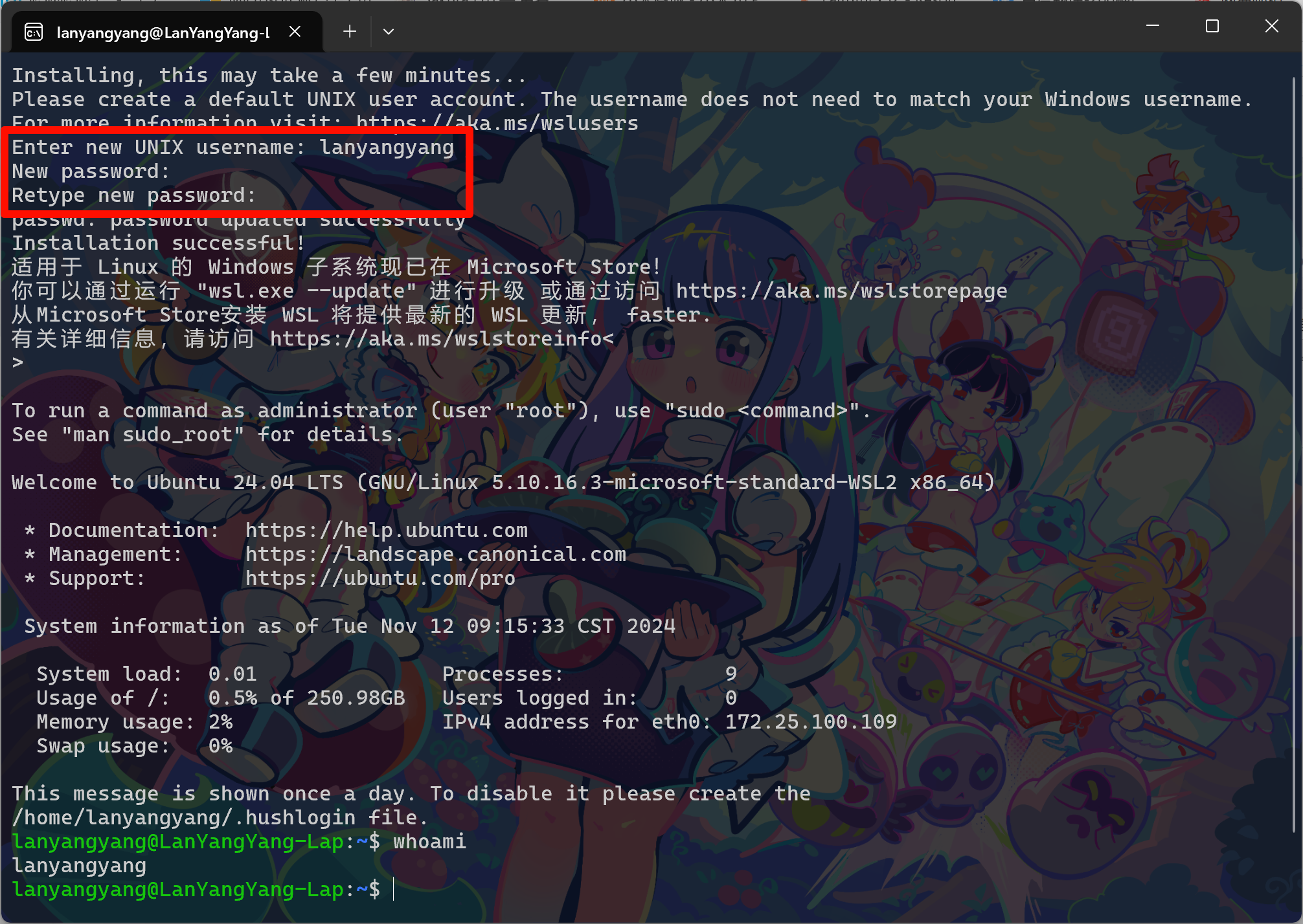 本次安装的Linux发行版为Ubuntu 24.04,想要安装其他发行版请自行选择,安装方法是差不多的