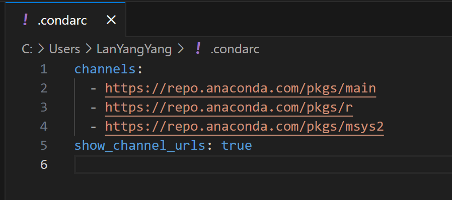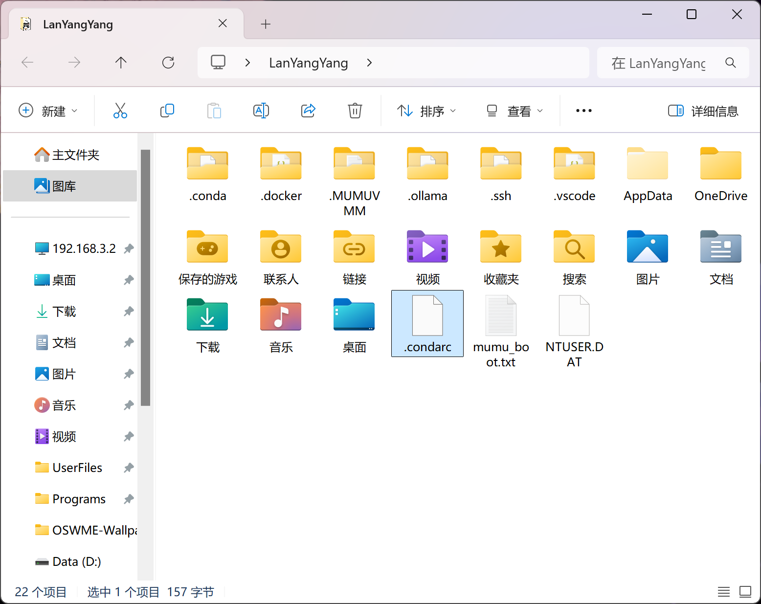 之后我们前往用户目录,这里生成了.condarc文件,使用任意文本编辑器打开它