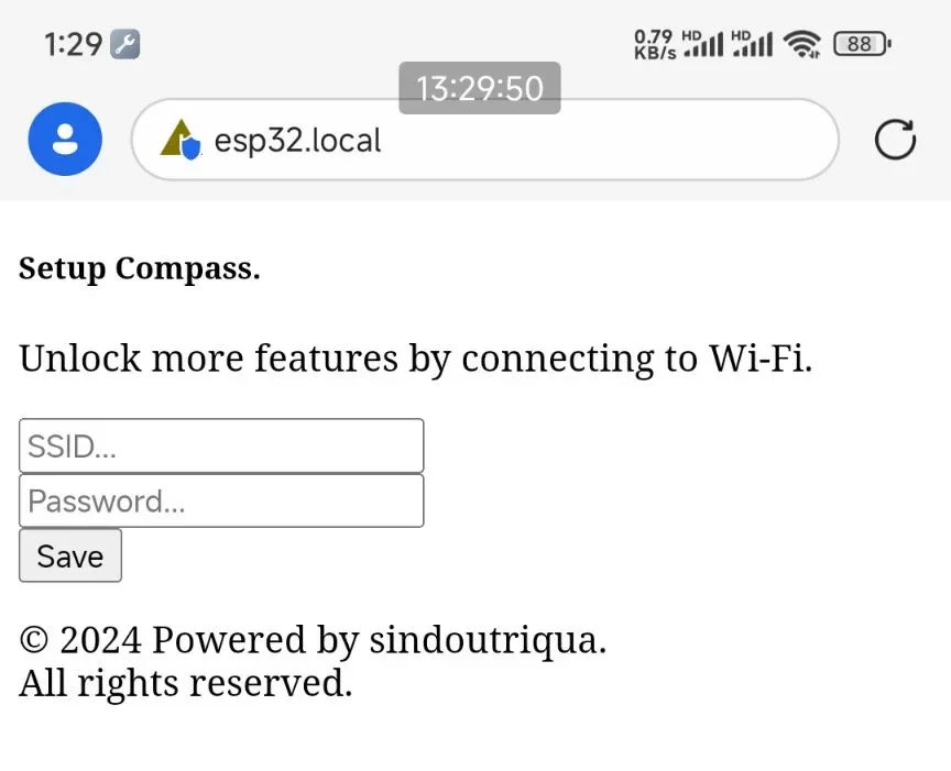 连接后打开手机浏览器,在地址栏输入http://esp32.local,进入配网界面