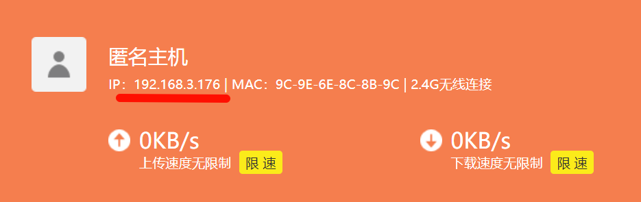 (我的路由器不显示设备名称,所以图片上写着匿名主机)