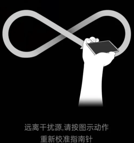 关闭罗盘重新打开,在指针转圈的时候长按按钮,指针会被定住,之后在空中画八字会自动校准罗盘