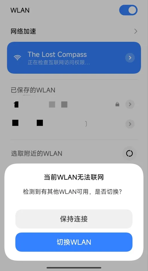 用手机连接名为“The Lost Compass”的Wifi,可能会提示无法联网,一定要选择保持连接