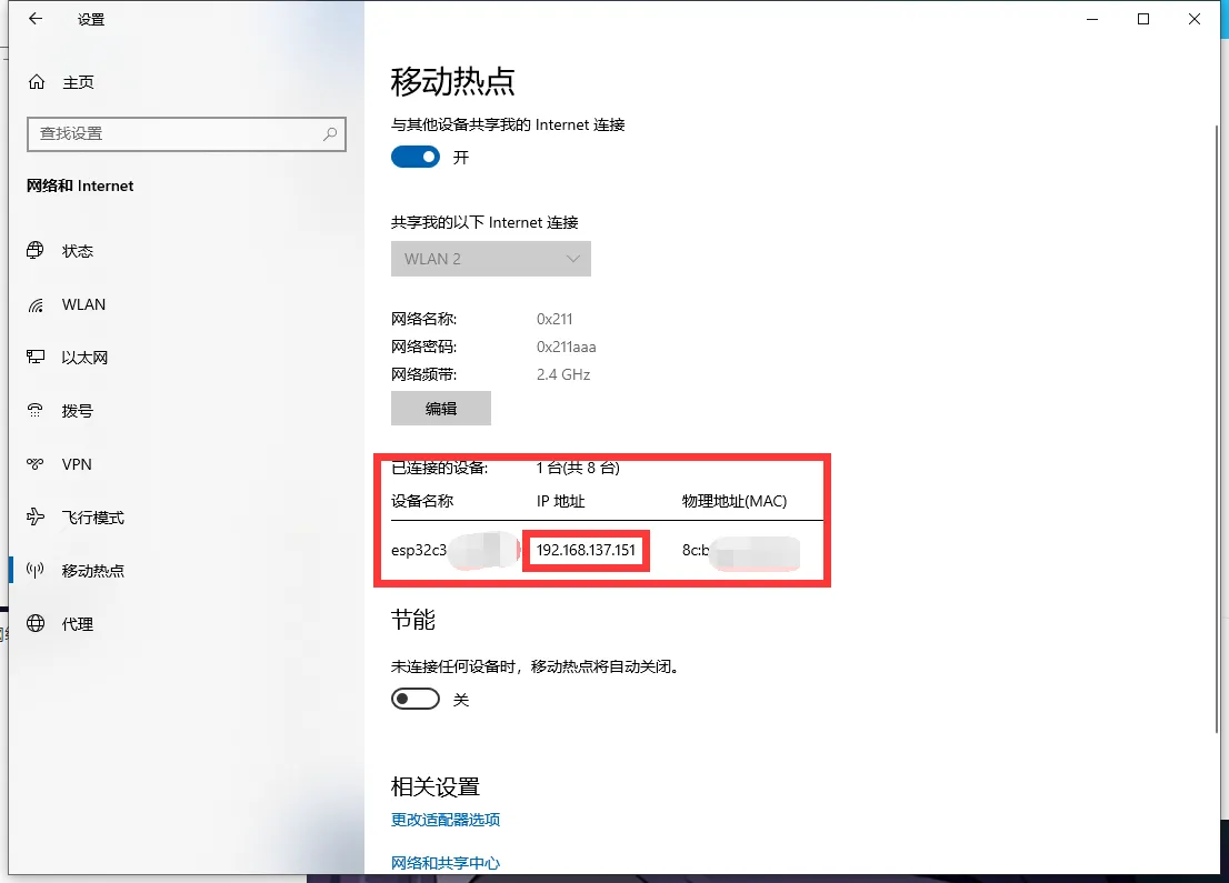 在第二个输入框填电脑热点的网络密码