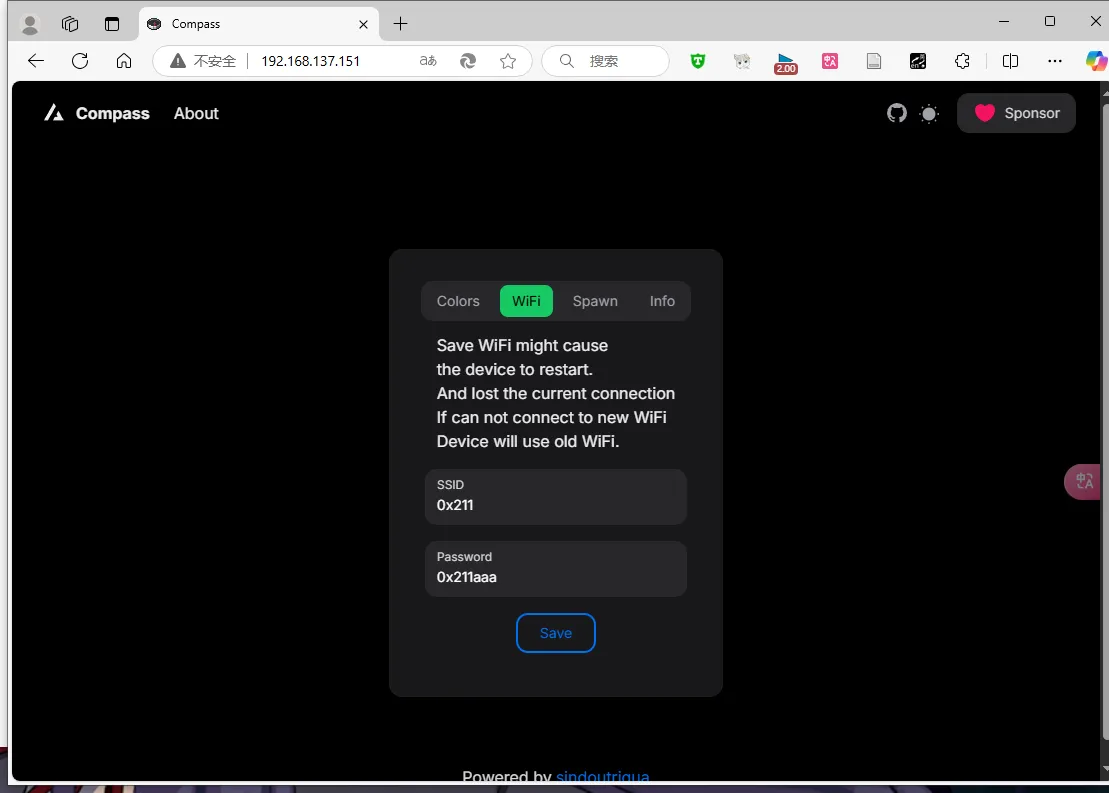 注意:罗盘只能连接2.4GHz的Wifi,因此热点也必须是2.4GHz的