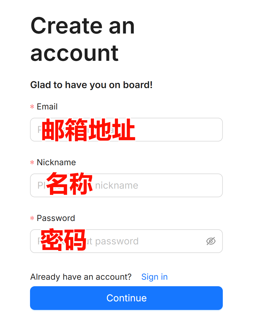 点击Continue按钮后会回到登录界面,这里已经自动填写了刚刚注册时的邮箱和密码