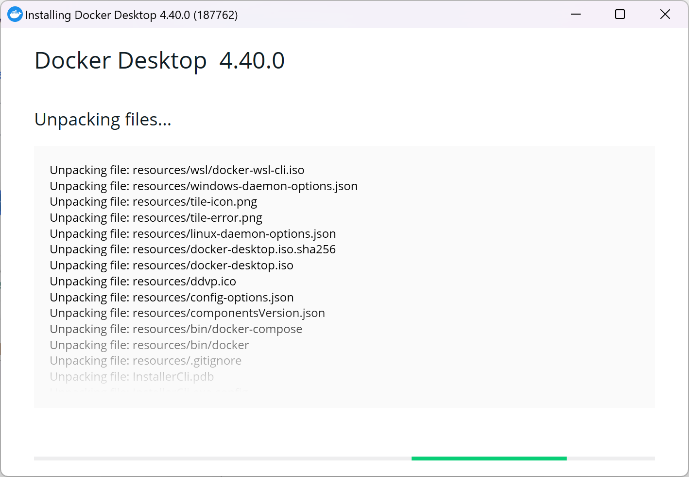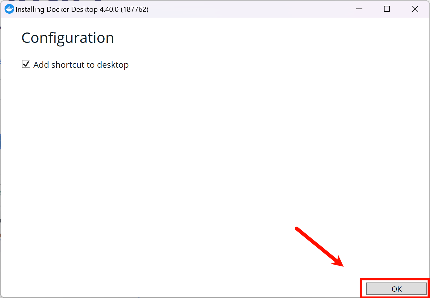 运行刚刚下载的Docker Desktop Installer.exe,点击“OK”,等待安装程序运行完成|