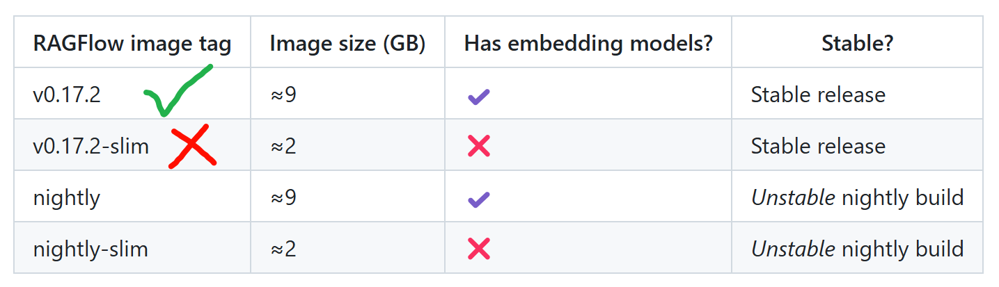 查阅仓库中的说明文件,提到了直接使用Docker部署的是v0.17.2-slim版本