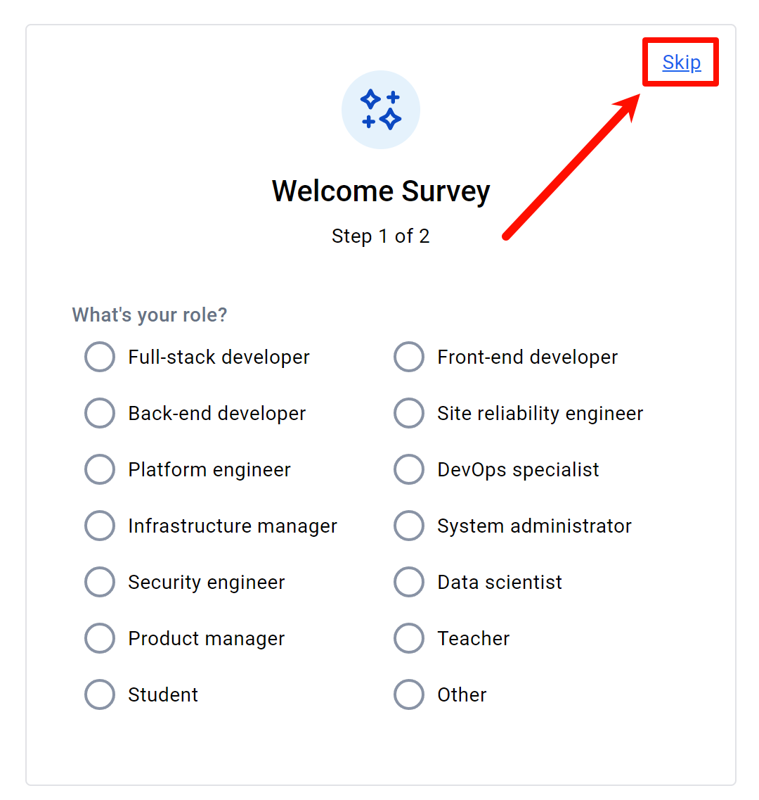 之后会问你工作类型什么的,同样点击右上方的Skip按钮直接跳过