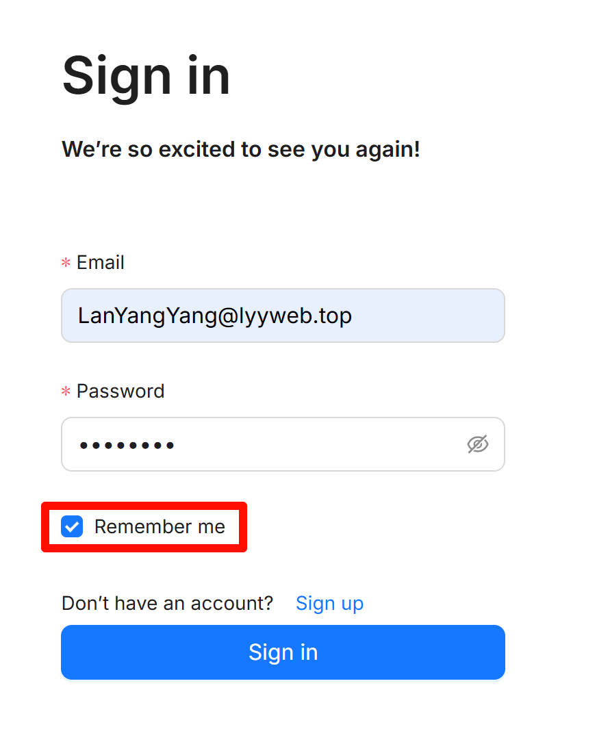 勾选“Remember me”则会记住登录信息,下次进入就不需要重新登陆了,然后点击“Sign in”按钮登录