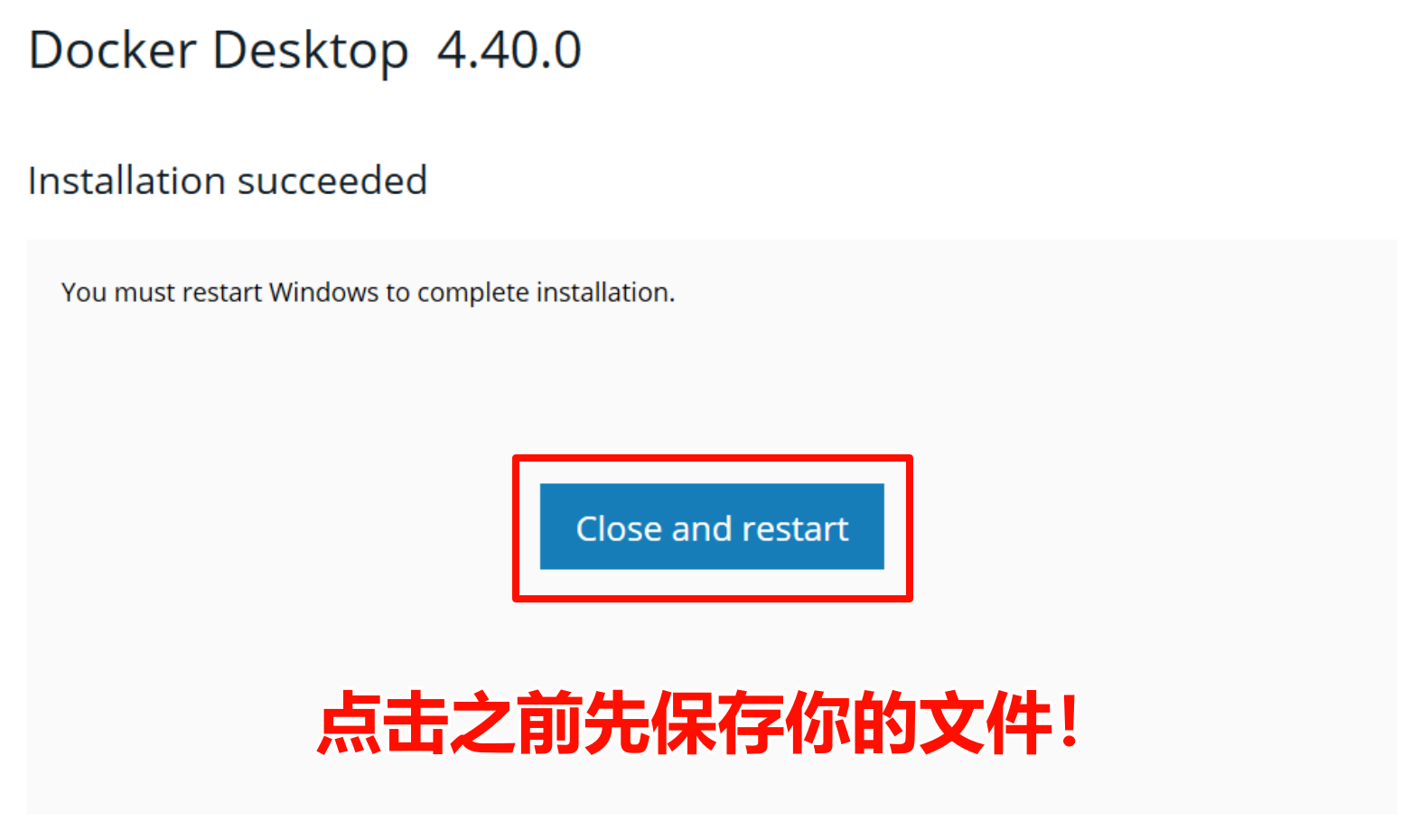 C盘需要预留50GB以上空间,或自行迁移Docker虚拟机位置