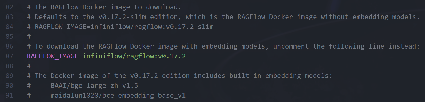 按下Ctrl+F启用查找功能,找到写着RAGFLOW_IMAGE的这几行