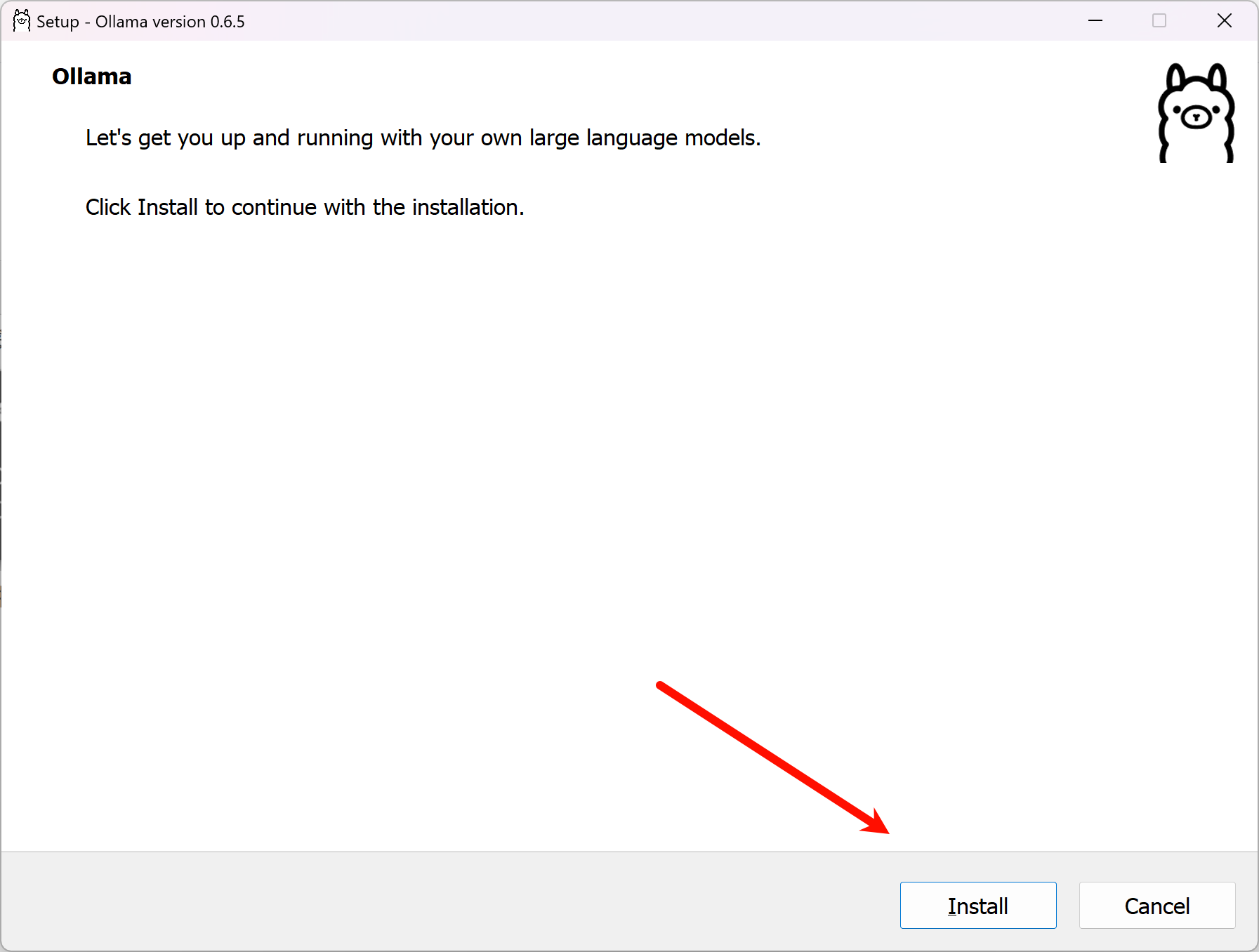 运行刚刚下载的OllamaSetup.exe,点击“Install”,等待安装程序运行完成