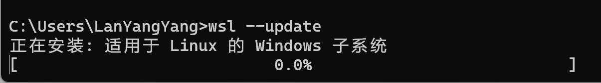 打开cmd,输入wsl --update,回车运行,等待进度条完成后重启电脑