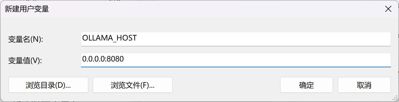 新建Ollama_HOST变量,值为0.0.0.0:8080
