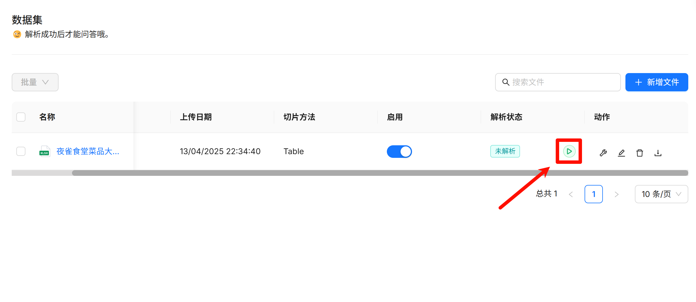 解析状态变为“成功”即代表文件解析完成,知识库也创建完成了